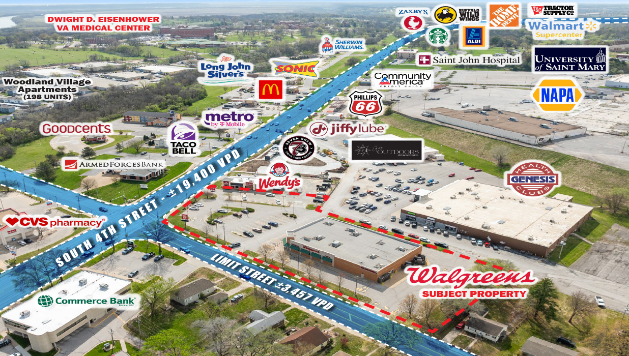 • The property is located less than a half mile from Saint John Hospital and Dwight D. Eisenhower VA Medical Center, serving as the closest Walgreens location.